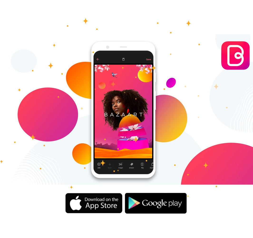 Download the free Bazaart app after you've decided which picture you will use. Make sure the quality of the image is good enough for it to be sharp when printing on a large size shirt or product.
